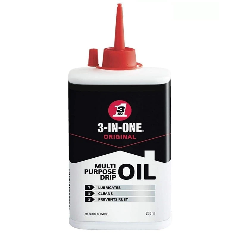 3-IN-ONE is a specially quality formulated lubricating, penetrating, and cleaning oil. 3-in-1 unique set of ingredients enable it to lubricate as well as protect metal surfaces, on nuts and bolts, hand and power tools, bearings, locks, fans, firearms, bicycles, rollers, wheels, drill bits, saw blades, ladders, seals, bearings, shafts, trailer hitches, skateboards, and moving parts nearly everything that moves.