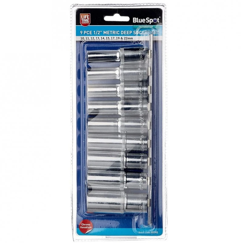 Blue Spot Tools 1/2 Drive Long Deep Socket Set on Rail 1/2″