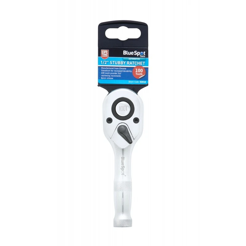 Blue Spot Tools 1/2 Inch Stubby Ratchet 100 Teeth 02018 Bluespot