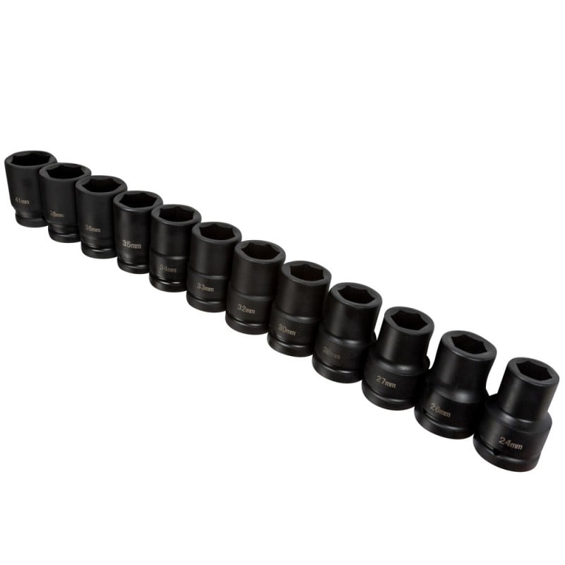 The BlueSpot 12 piece 1 inch Metric Deep Impact Sockets 24