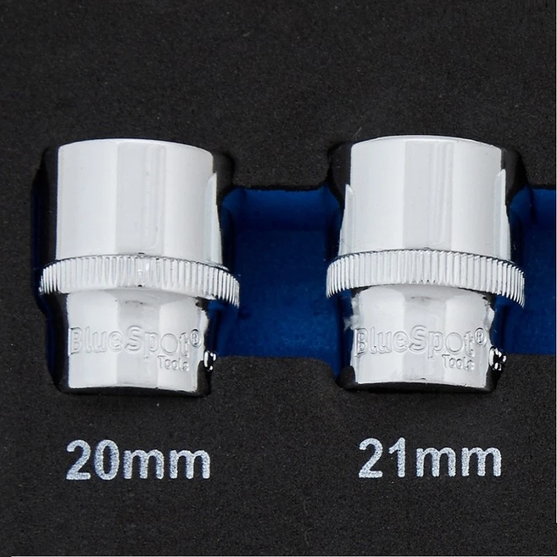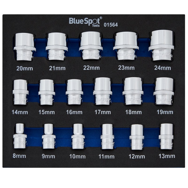 BlueSpot Tools 17 Piece 3/8 Inch Metric 12 Point Shallow 8mm to 24mm Socket Set in EVA Box Foam