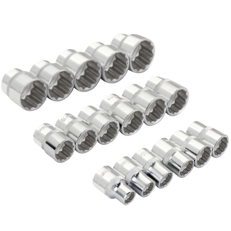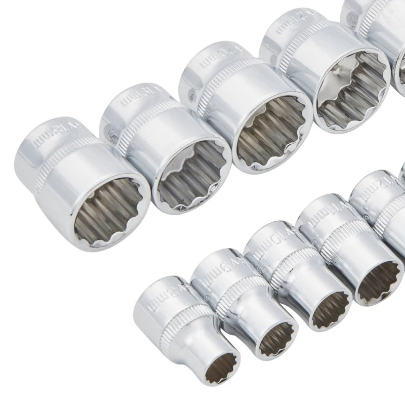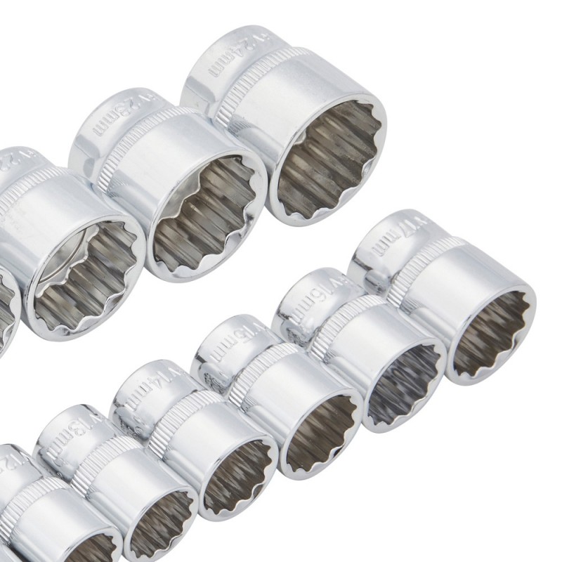 socket set comes in sizes 8 to 24mm and manufactured from a high quality chrome