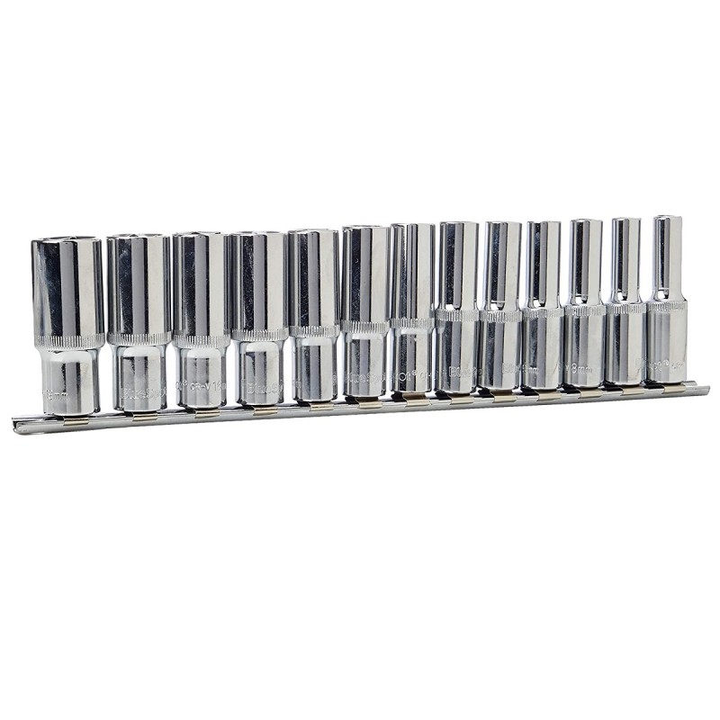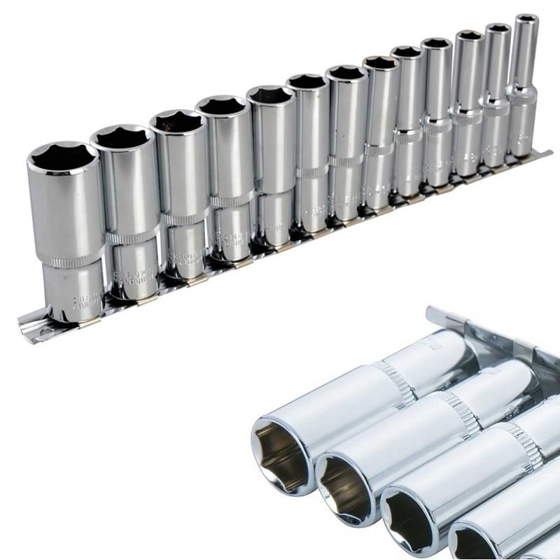 Blue Spot 3/8 Inch Deep Metric Socket Set on Steel Rail
