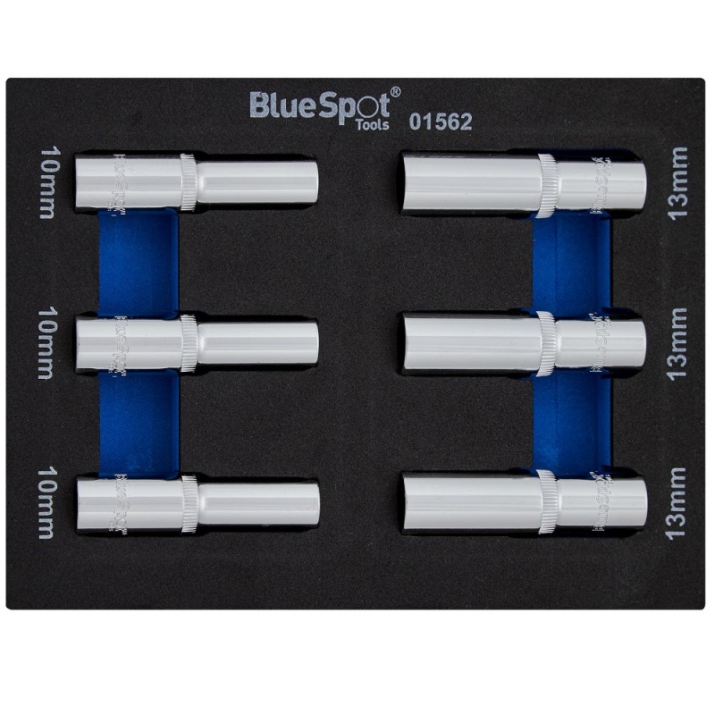 Blue Spot Tools 6pc 3/8 Inch Metric Deep Sockets 10mm, 13mm EVA Tool Box Foam