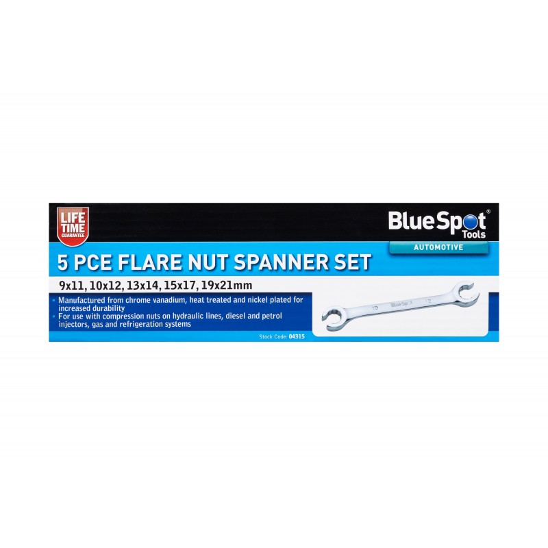 Blue Spot Tools 5pc Flare Nut Spanner Set 9mm to 21mm