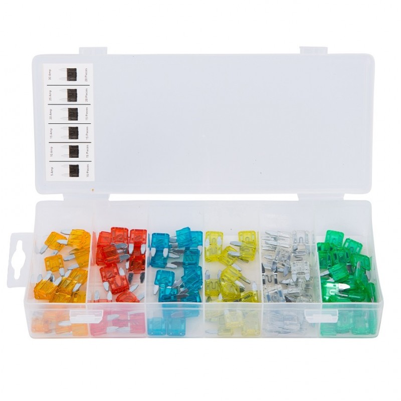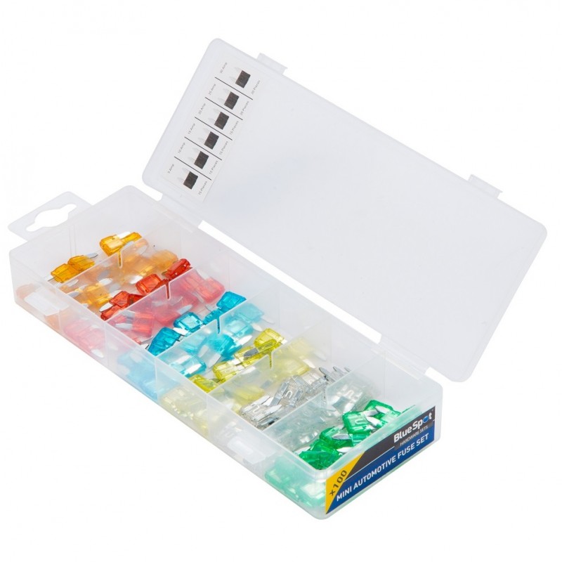 BlueSpot Tools 100 Piece Mini Automotive Fuse Set Contains an assortment of popular zinc electrode fuses used within the automotive industry.