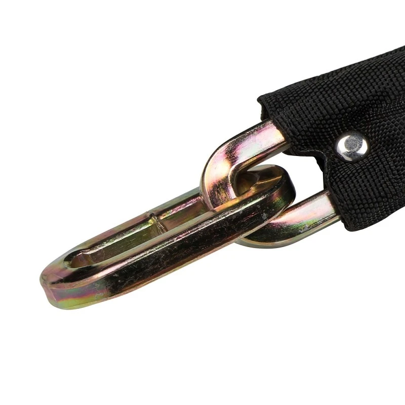 The square link profile makes it hard to use bolt cutters on the chain.