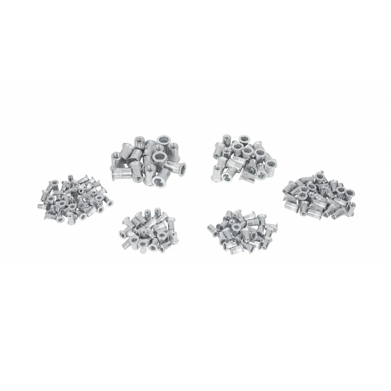 The blue spot tools 165 piece aluminium rivet nut set is suitable for use with most makes of nut riveter.
