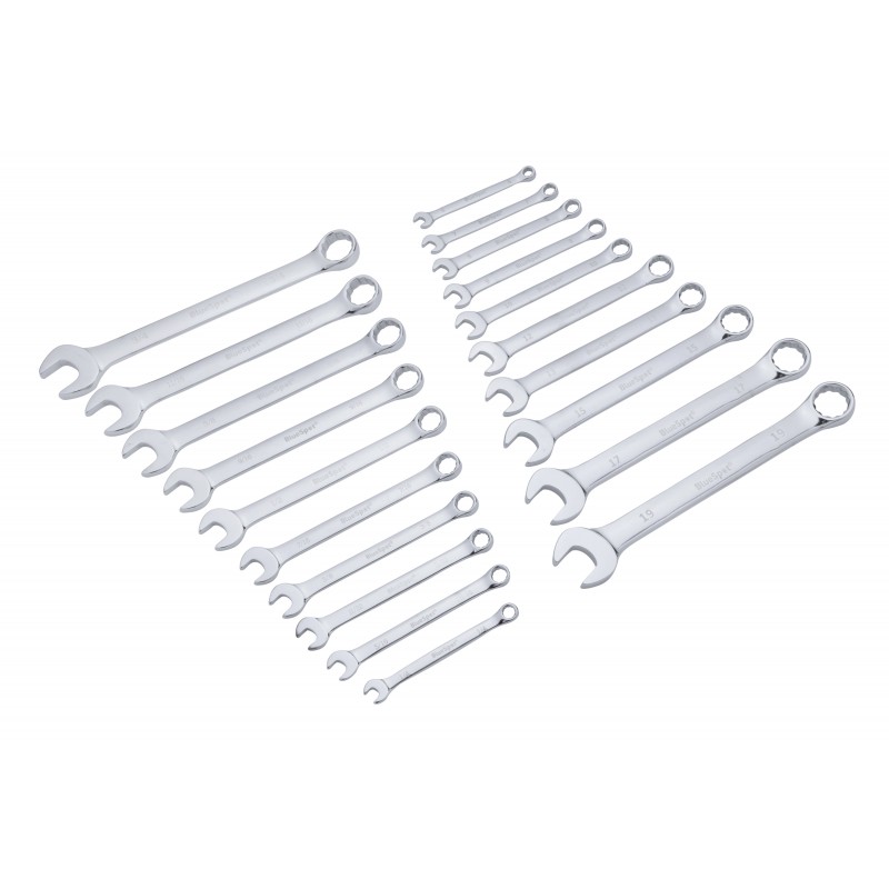 The set contains a large range of popular sized spanners, including some stubby spanners in a fully polished mirror finish.