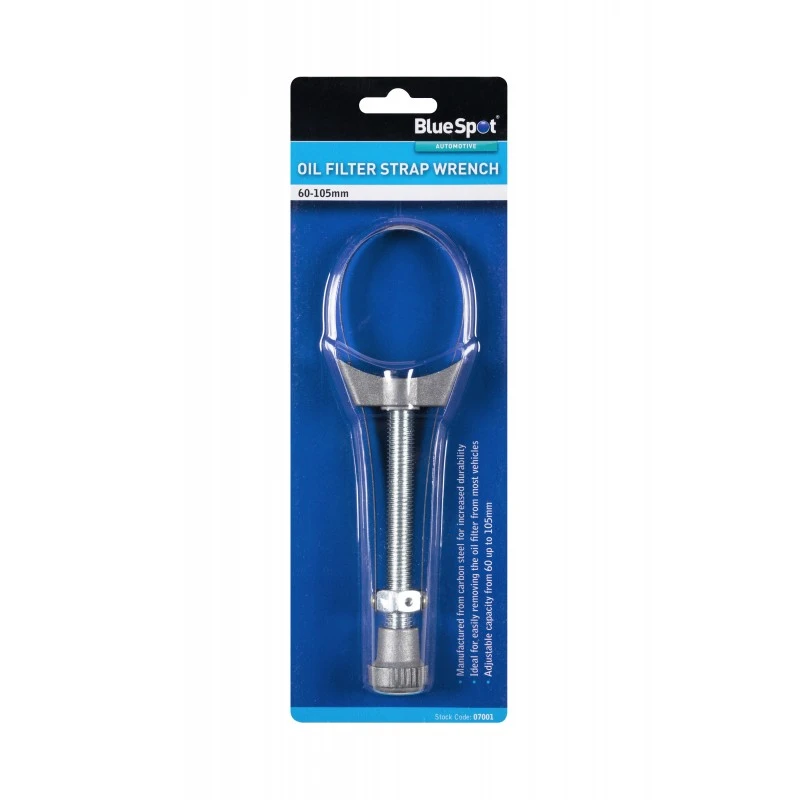 BlueSpot Oil Filter Strap Wrench 60 to 105mm is specifically designed for easy removal of oil filters from most vehicles.