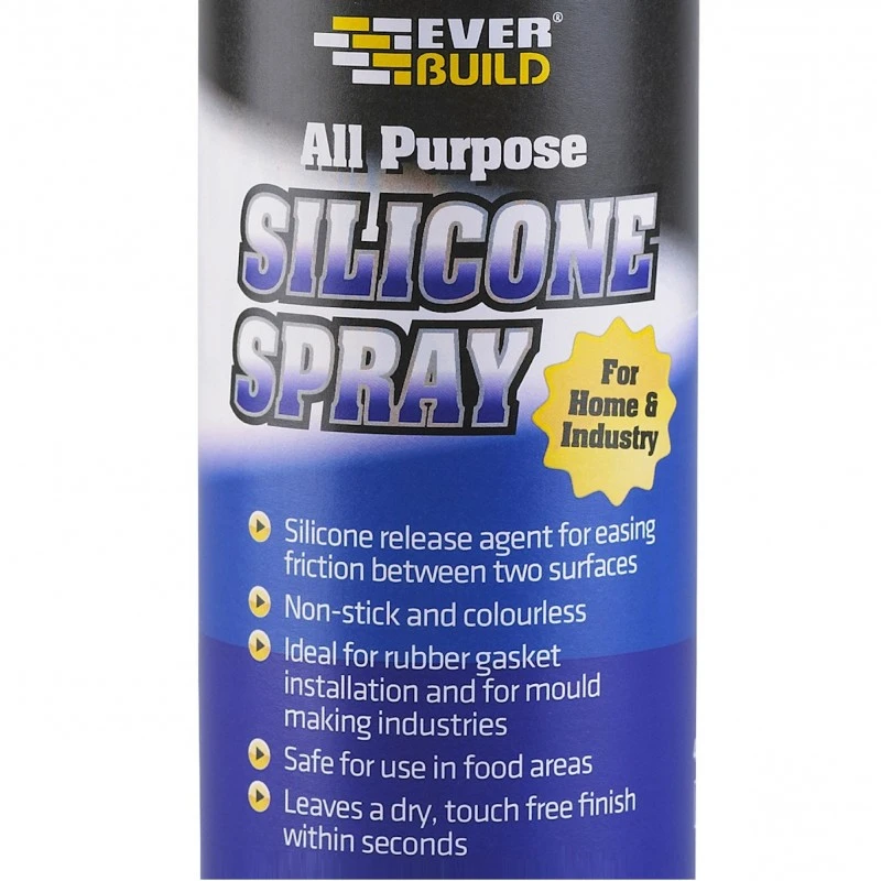 EVERBUILD ALL PURPOSE SILICONE SPRAY is a dry silicone lubricant and mould release agent for the easing of friction between two surfaces.