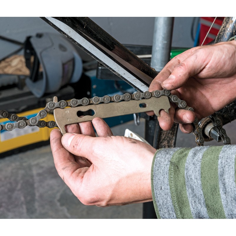 The bicycle chain wear indicator is easy to use and accurately indicates if chains have stretched by 0.75 and 1% or more.