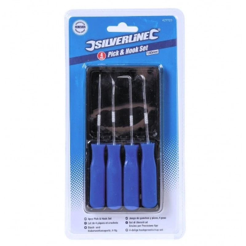 4 piece pick set with Chrome plated shafts and hard-grip handles.