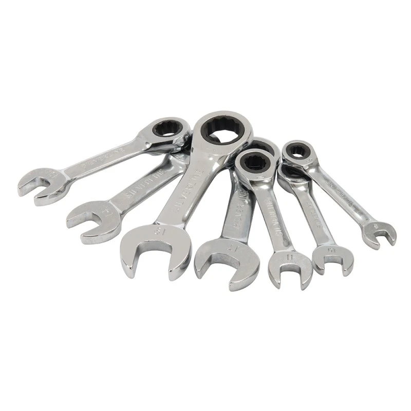 Silverline Stubby Ratchet Spanner Set 8mm 10mm 11mm 13mm 14mm 17mm 19mm