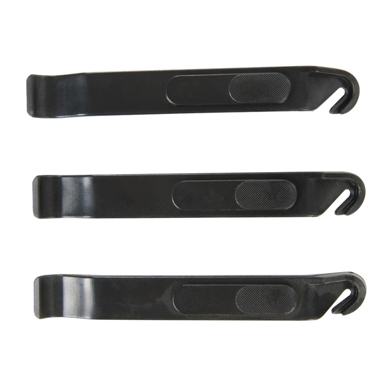 The robust plastic 110mm tyre levers are light and compact and come as a set of three.Β